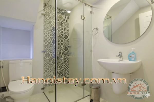 Experience the epitome of modern living with this exquisite 3-bedroom lake view apartment for rent in the serene Ba Mau area of Hanoi. This residence blends sophisticated design with breathtaking natural beauty. The spacious bedroom features a plush bed, a stylish red and gray headboard, and a wall-mounted flat-screen TV. The living area is adorned with a cozy sofa, a wooden coffee table, and a dining space with a large table and benches, perfect for gatherings. The modern kitchen comes equipped with a refrigerator, oven, microwave, and sleek black countertops, catering to all your cooking desires. Floor-to-ceiling windows and sliding glass doors offer stunning lake vistas and abundant natural light. Additional amenities include air conditioning, a ceiling fan, and a picturesque balcony with patterned tiles and greenery. Enjoy a tranquil retreat in a prime location, steps away from Hanoi’s top attractions.
