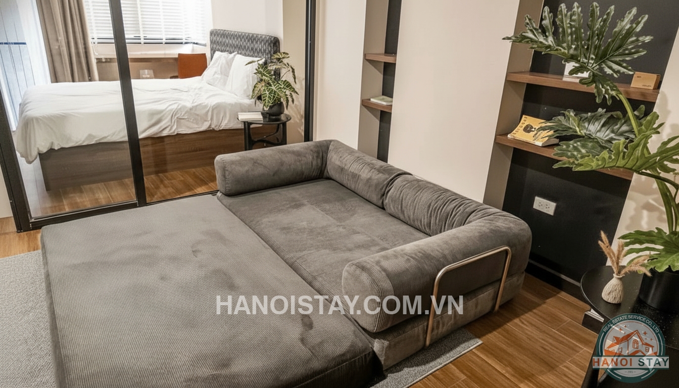 The apartment comes fully furnished with a modern and elegant design, ready for you to move in.
