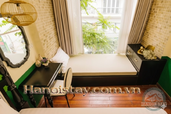 This stylish and fully furnished studio apartment offers charm and convenience in one of Hanoi’s most popular expat neighborhoods:
