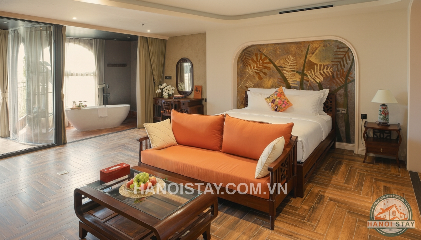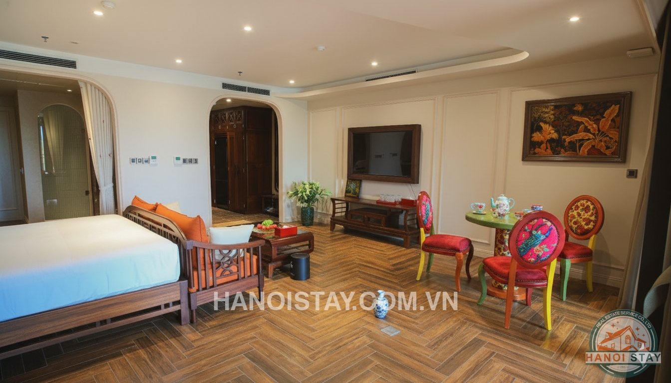 • ✔ Elegant Indochine Design – Beautiful wooden furniture, warm lighting, and artistic decor create a unique and luxurious living space.