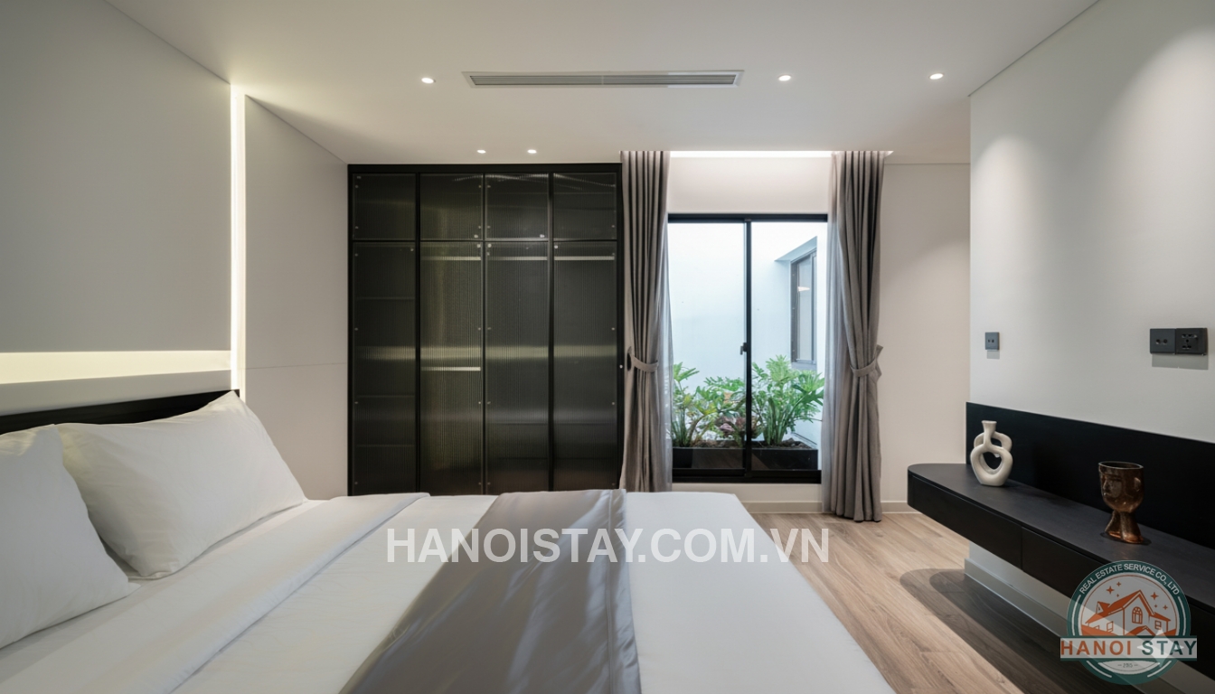 We have a spacious 2-bedroom apartment (82m²) available for rent in a prime location on Han Thuyen - Pham Dinh Ho street. The apartment is exquisitely designed with high-end, contemporary furniture, offering a comfortable and luxurious living space.