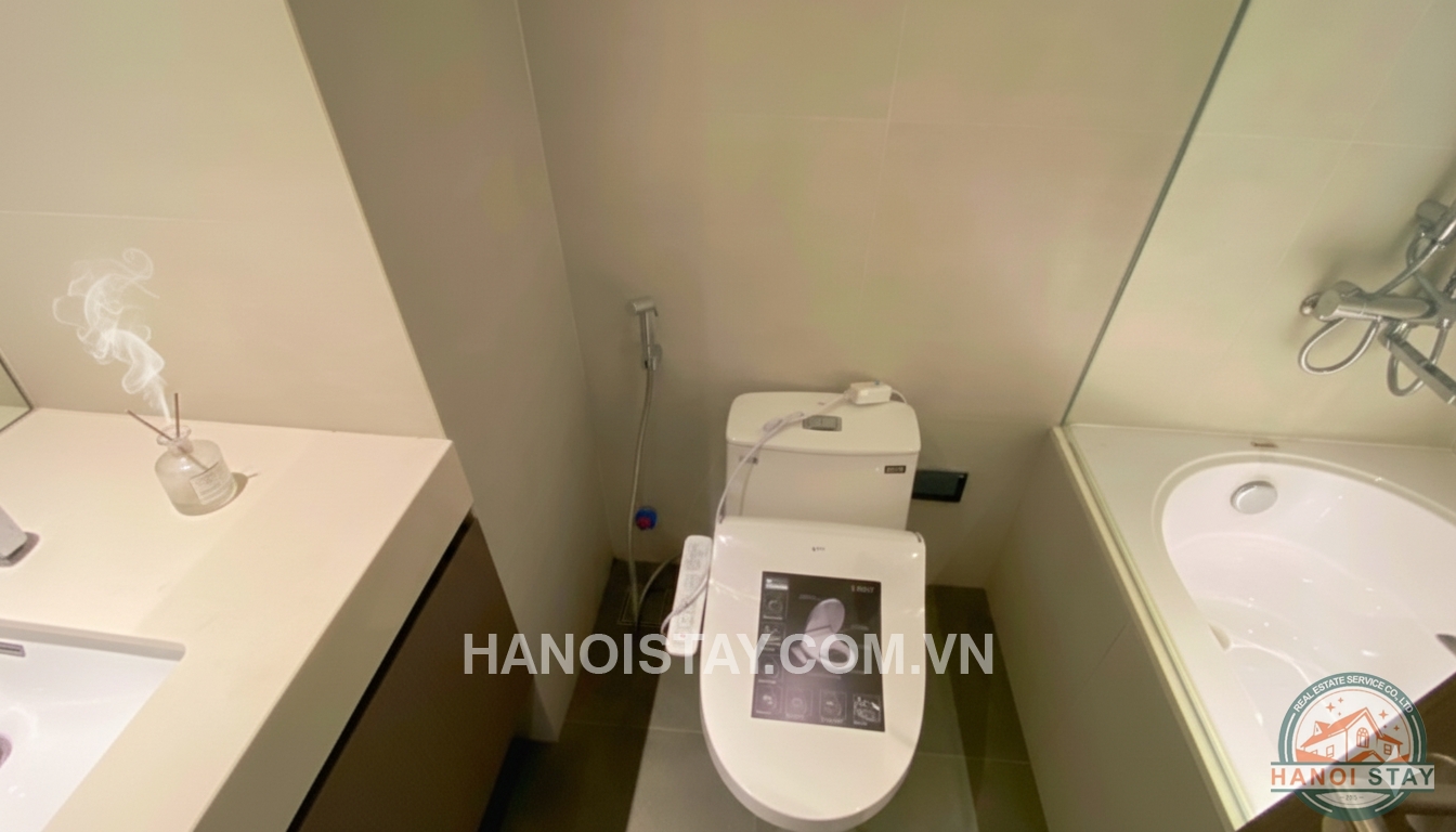 Main Bathroom: A true highlight, featuring a full, built-in Bathtub and a separate glass-enclosed walk-in shower area. Equipped with modern fixtures and a smart toilet.