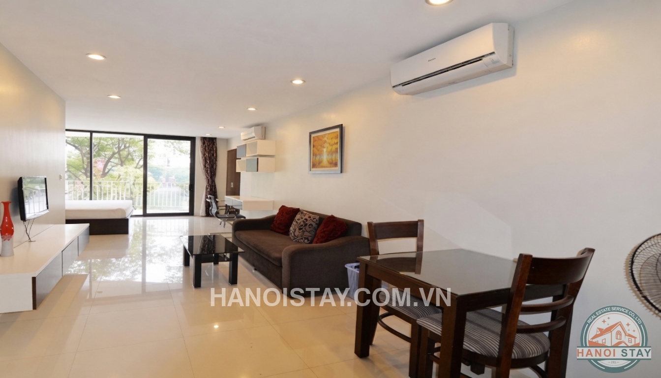 With an usable area of 50 sqm, the flat is designed open floor plan with leather sofa, coffee table, an LCD TV with TV shelf, functional kitchen with two level kitchen cabinet, induction cooker, microwave, cooking stuff, a set of dining table with two chairs, A Queen size bed, wardrobe, A very nice lake view from the bed, a lovely bacony. Full bathroom with walkin shower, basin, toilet...