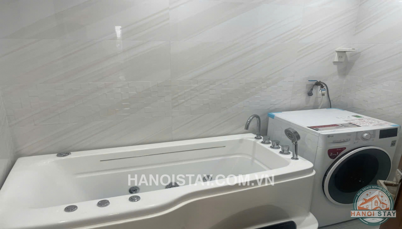 A standout feature of this apartment for rent in Hai Ba Trung is the large bathroom with a jacuzzi-style bathtub, ideal for relaxing after a busy day. The in-unit washer–dryer brings extra convenience and saves you time on laundry.