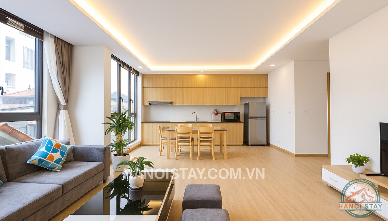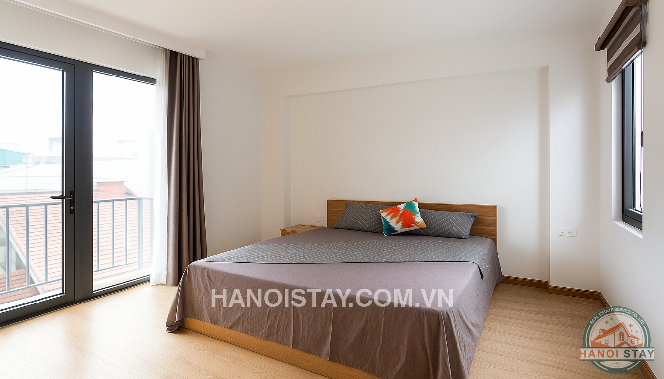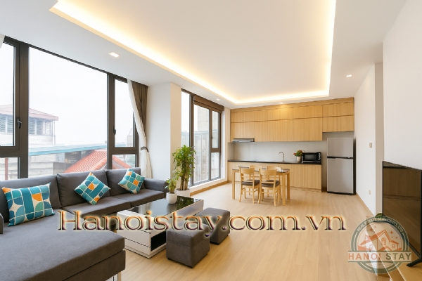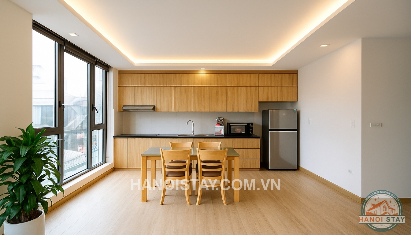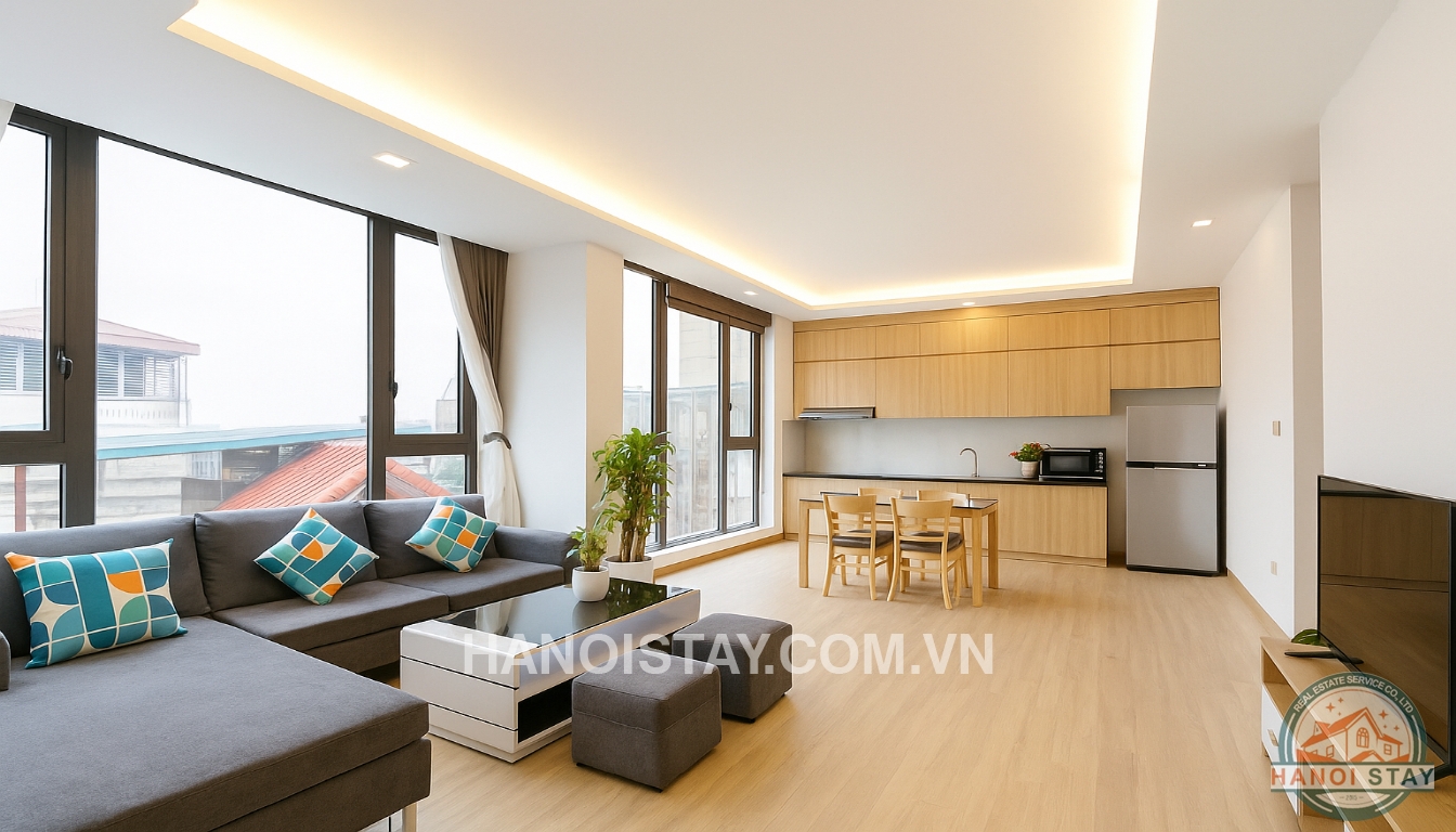 This bright apartment for rent in Hanoi on Quang Khanh Street offers a contemporary and comfortable lifestyle, perfect for individuals or couples looking for a well-appointed home in Tay Ho.