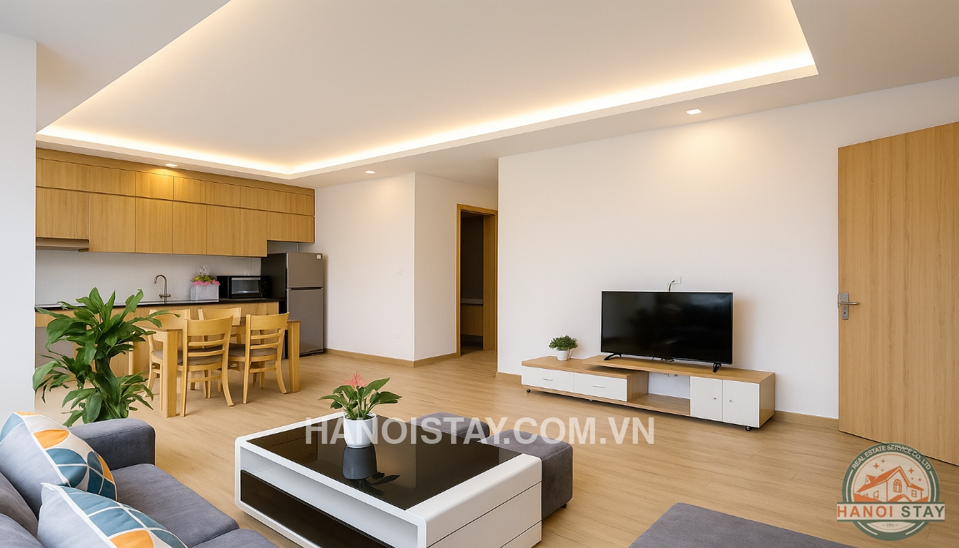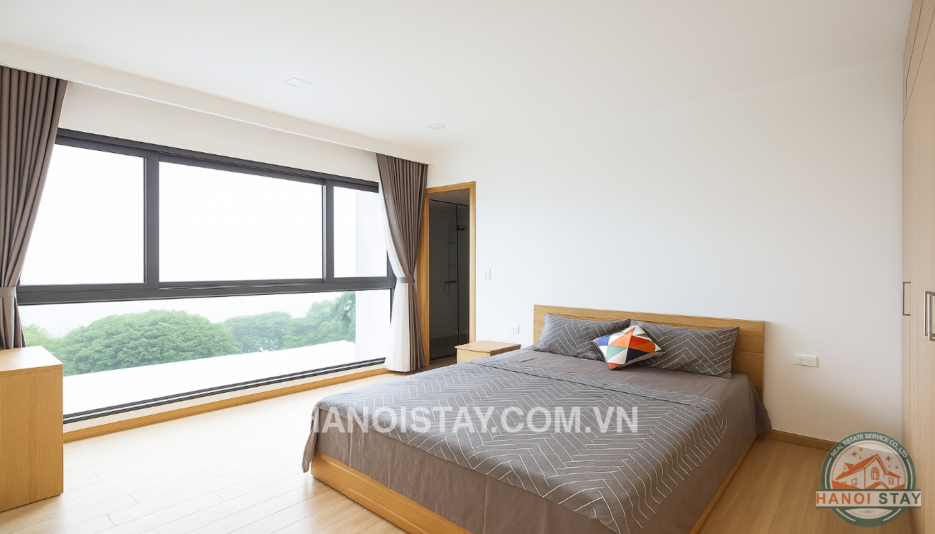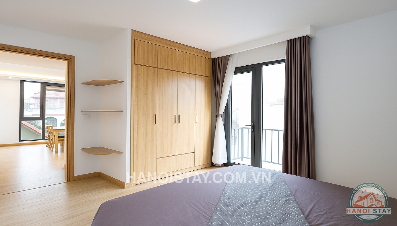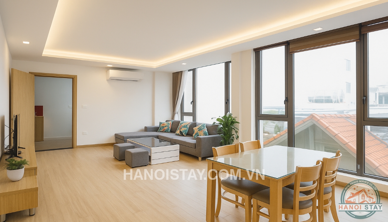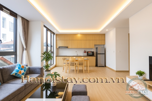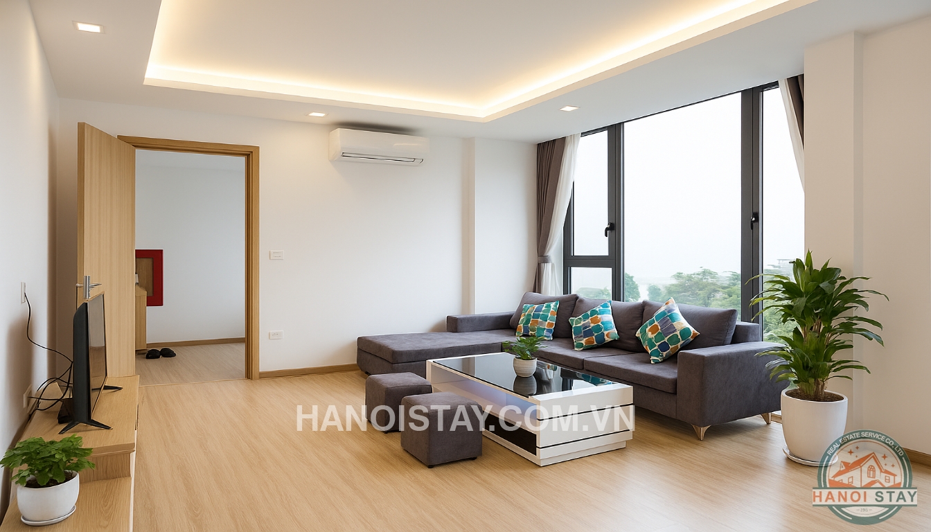 This bright apartment for rent in Hanoi on Quang Khanh Street offers a contemporary and comfortable lifestyle, perfect for individuals or couples looking for a well-appointed home in Tay Ho.