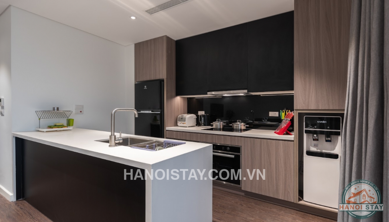 This bright 02 BR apartment for rent in To Ngoc Van, Tay Ho features modern furnishings, allowing for immediate occupancy with minimal personal items required. The property is conveniently located just 2 minutes from West Lake and approximately 20 minutes from Noi Bai International Airport. Residents have access to the building's premium facilities, including retail options, recreational areas, and educational institutions nearby.