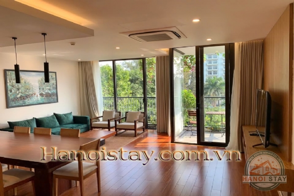Apartment Layout: 2 Bedrooms – 2 Bathrooms – Spacious Living Room – Balcony – Swimming Pool Size: 120 m² Location: Dang Thai Mai – Tay Ho – Hanoi Condition: Fully Furnished with premium items – Ready for immediate move-in.
