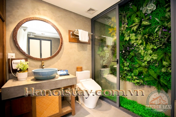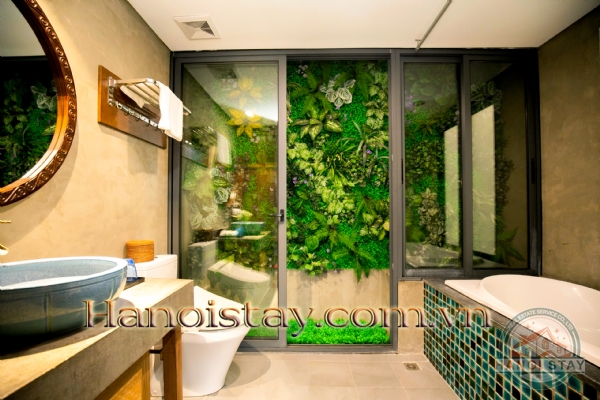 Unique Feature: The room is elevated by a gorgeous floor-to-ceiling glass panel that provides a view of a lush, vibrant indoor vertical garden, bringing the serenity of nature right into your home.