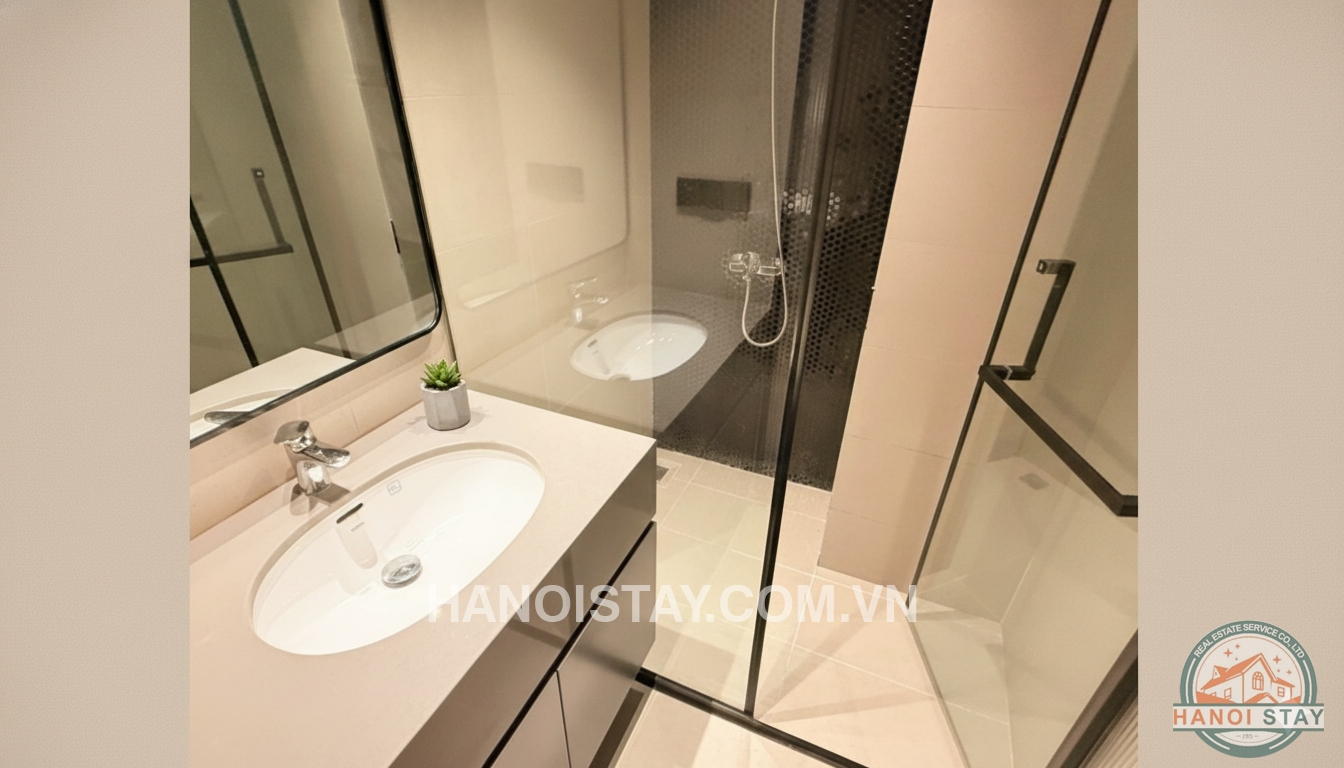 Layout: 1 Private Bedroom, 1 Chic Living Room, Open Modern Kitchen, and 1 Bathroom with a premium glass standing shower.