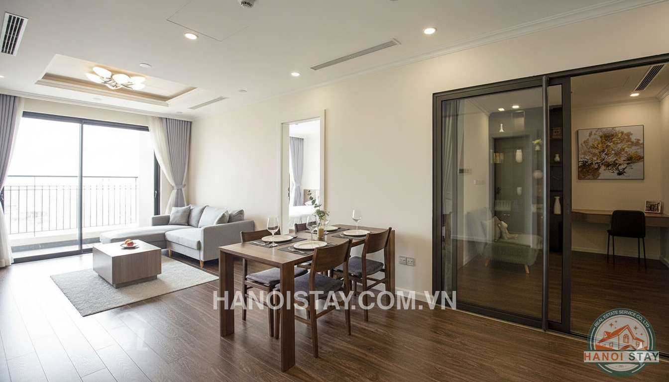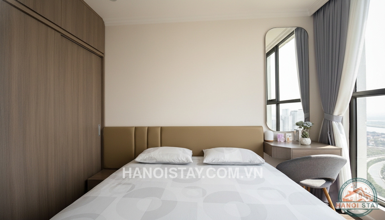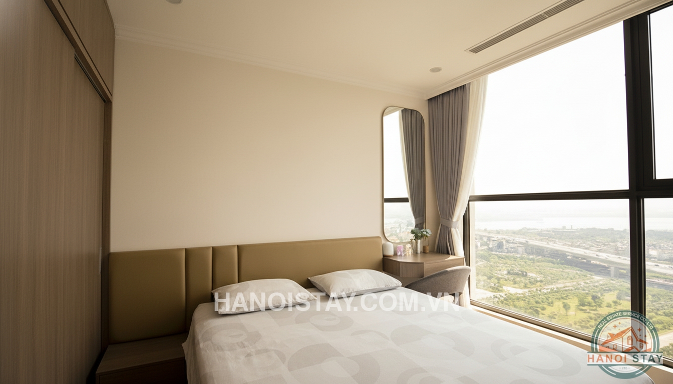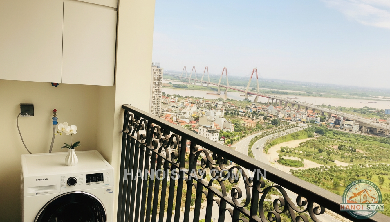Stunning view: Direct view of the Red River and Nhat Tan Bridge, offering a relaxing atmosphere and abundant natural light.