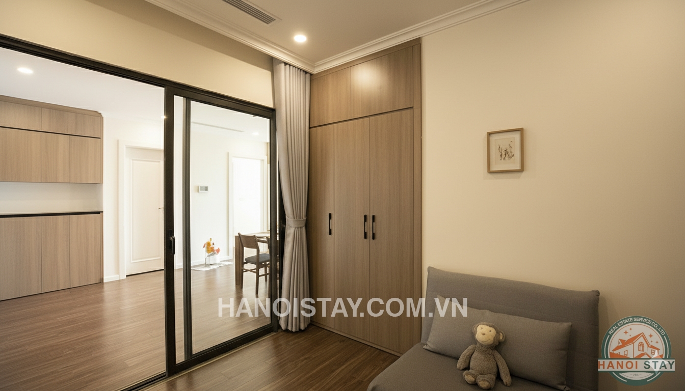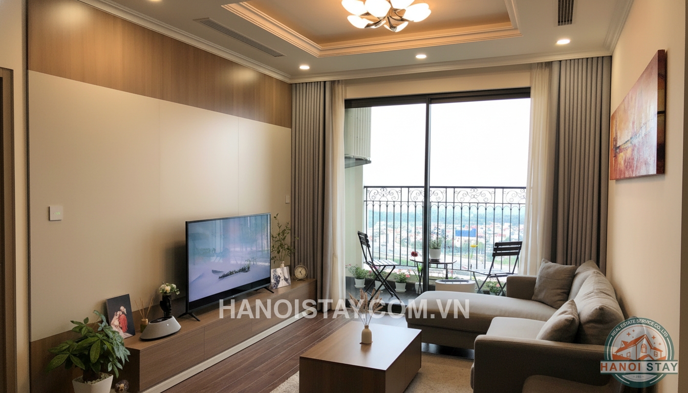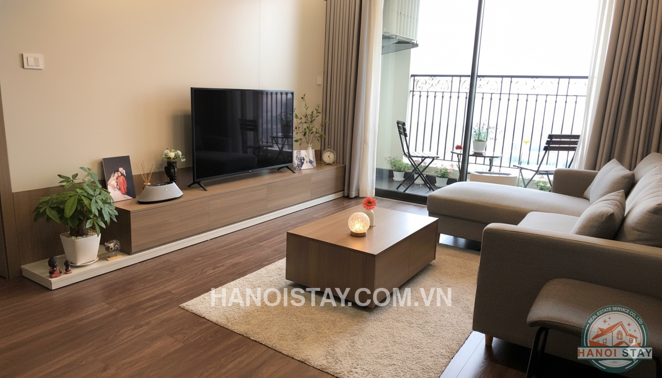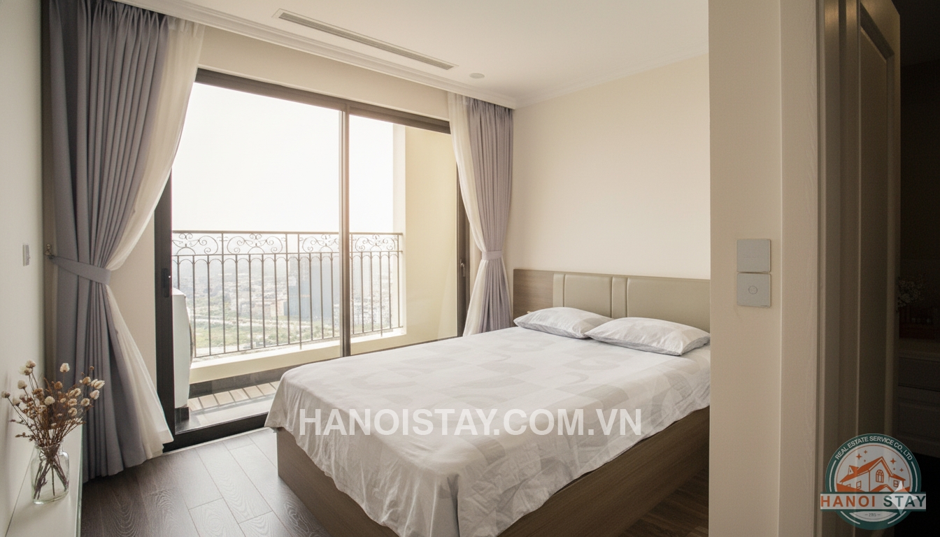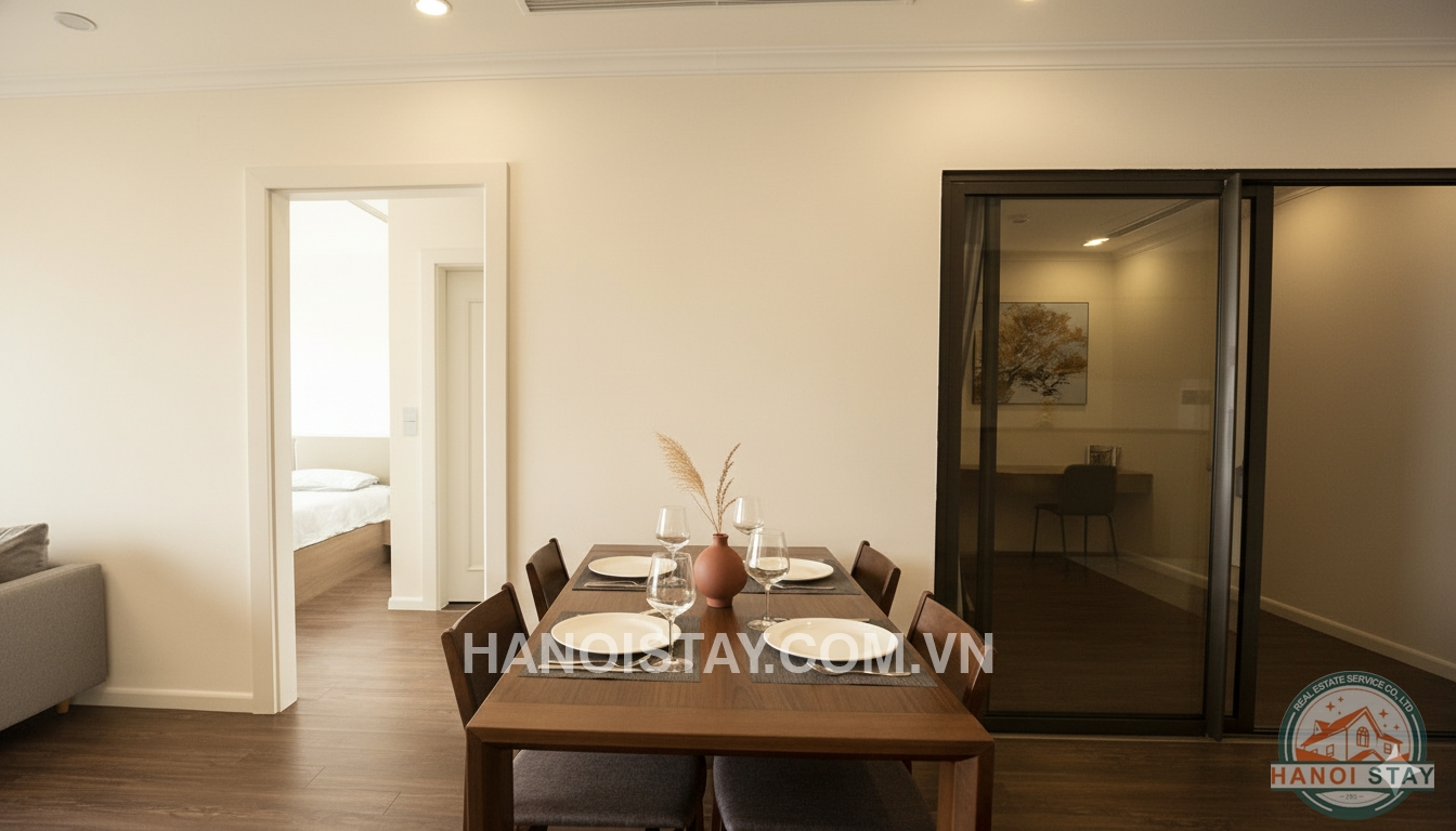 Stunning view: Direct view of the Red River and Nhat Tan Bridge, offering a relaxing atmosphere and abundant natural light.