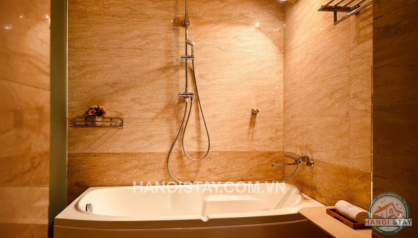 Special Features: Central AC system, elegant wooden floors, and a private bathtub for your relaxation.