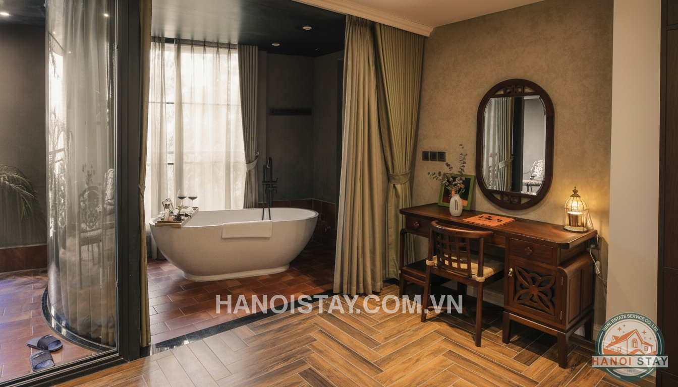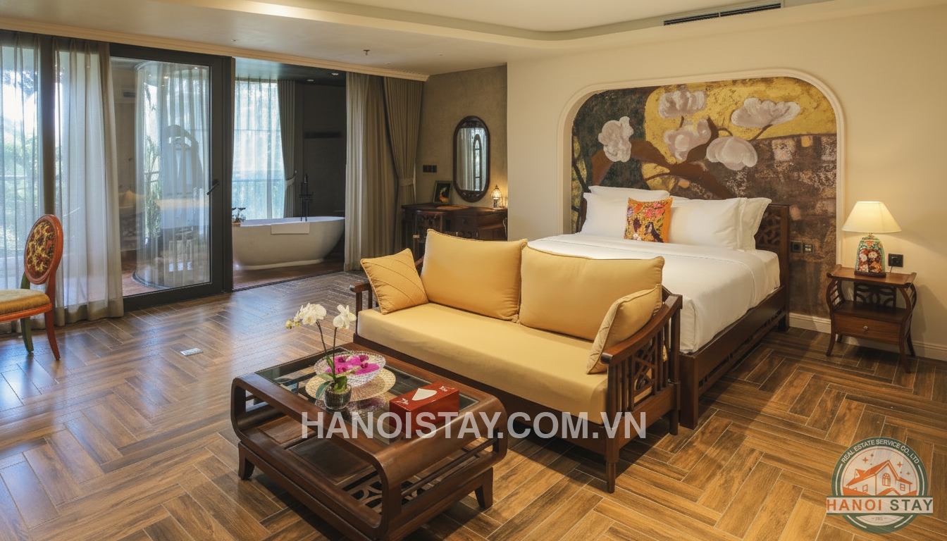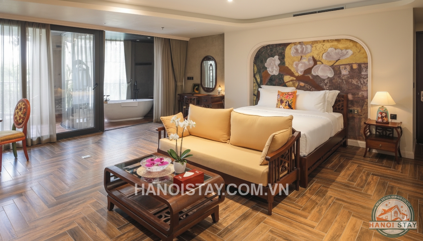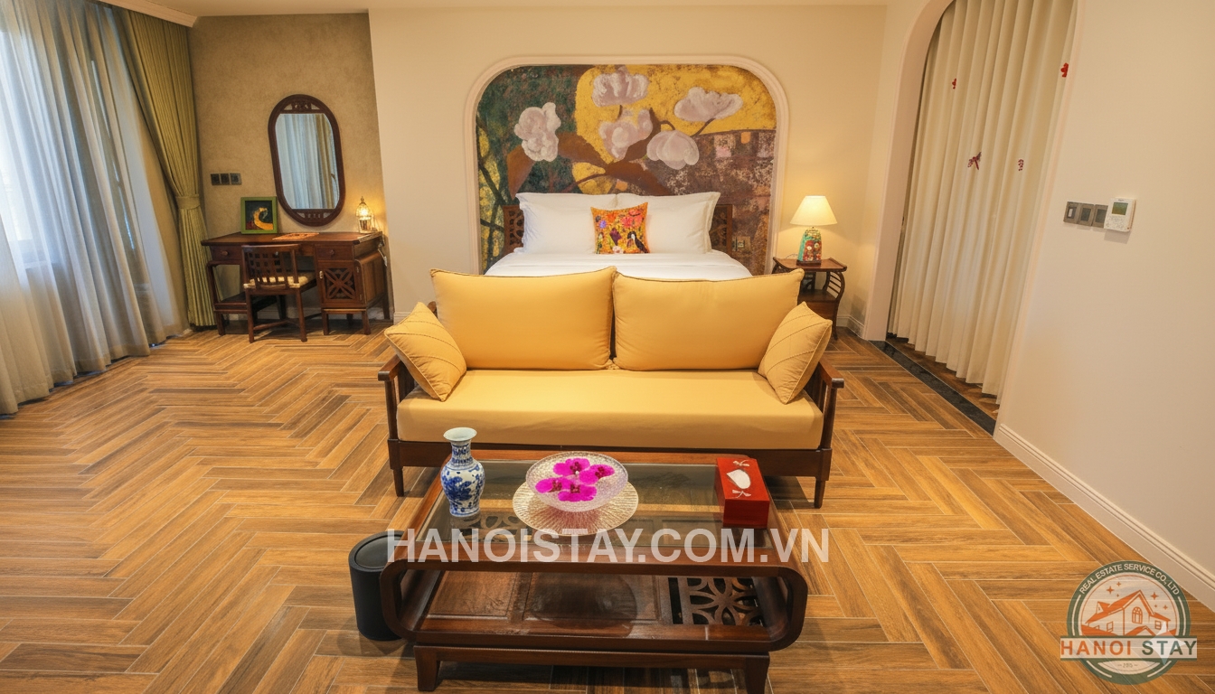 • ✔ Elegant Indochine Design – Beautiful wooden furniture, warm lighting, and artistic decor create a unique and luxurious living space.