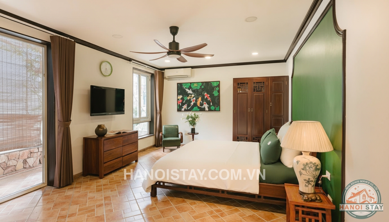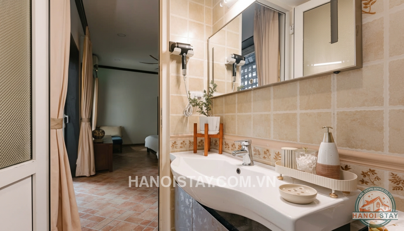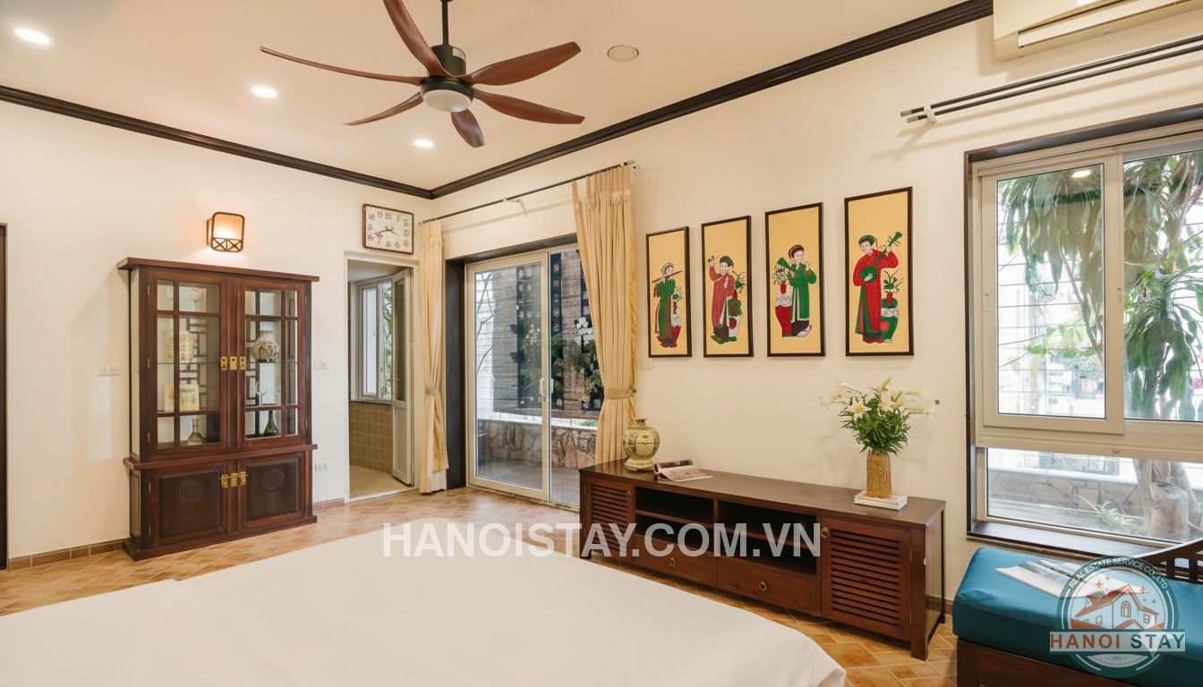 Situated in a high-security, civilized residential area just a 3-minute walk from Viet Xo Park, this private house offers a perfect blend of artistic luxury and peaceful living in the heart of Hanoi.