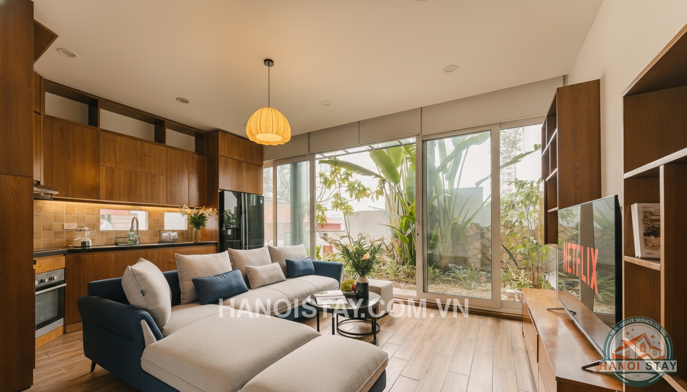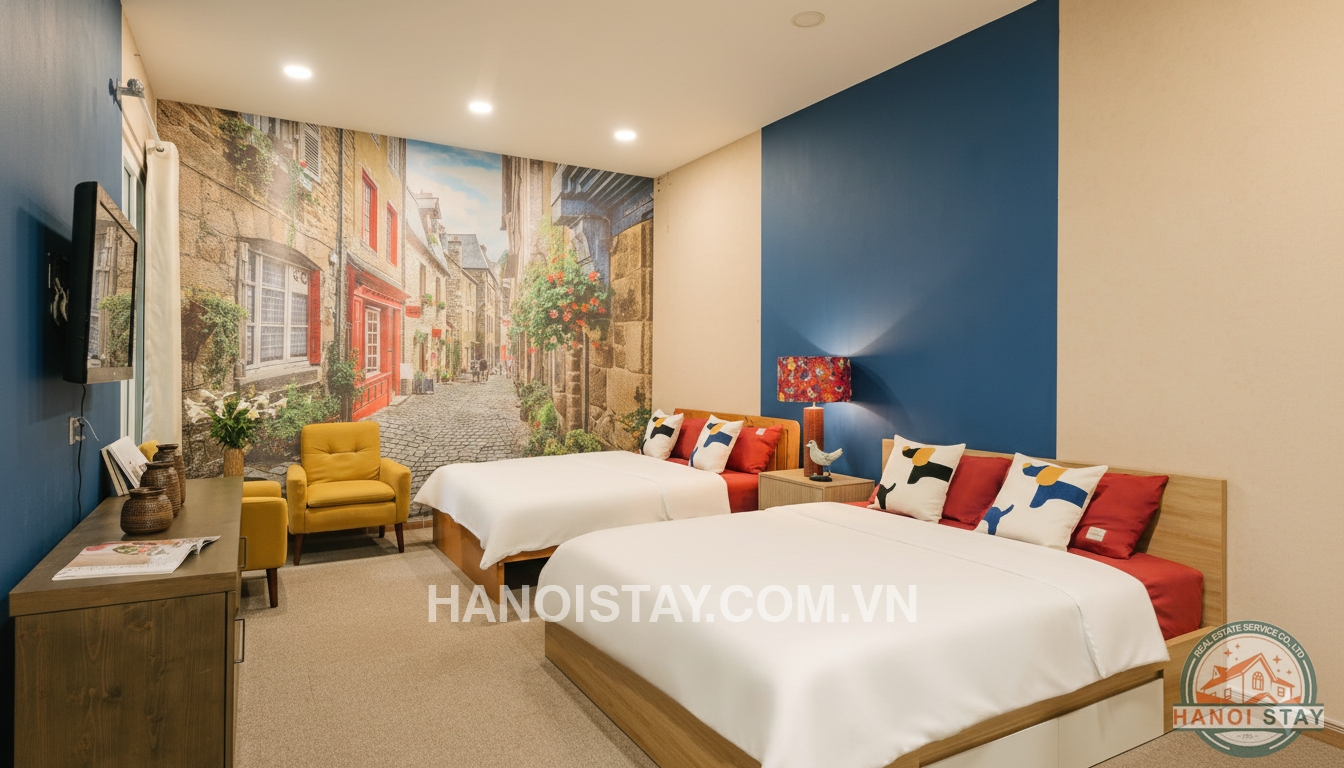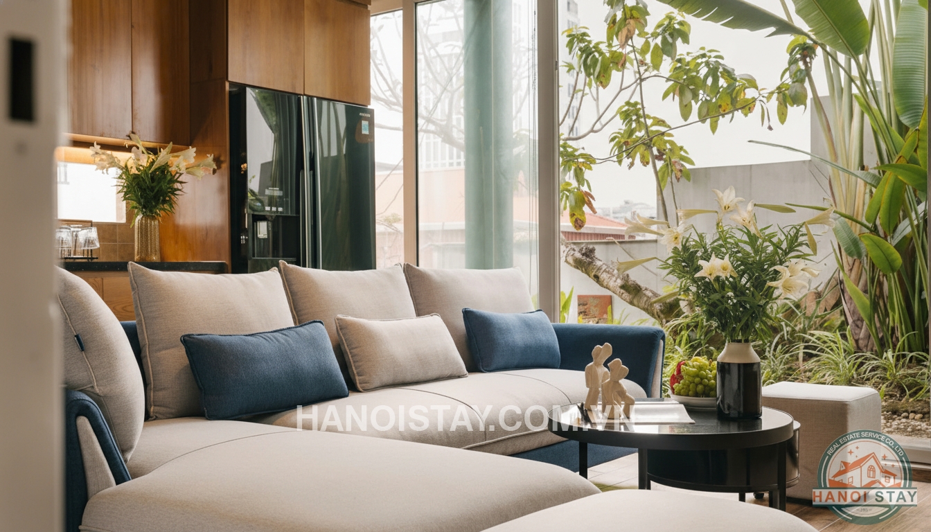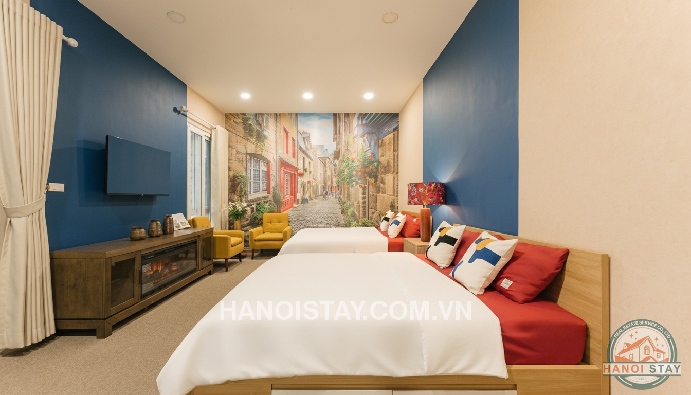 Situated in a high-security, civilized residential area just a 3-minute walk from Viet Xo Park, this private house offers a perfect blend of artistic luxury and peaceful living in the heart of Hanoi.