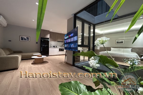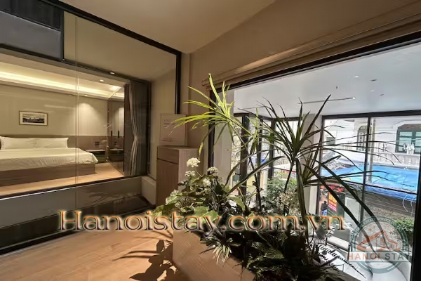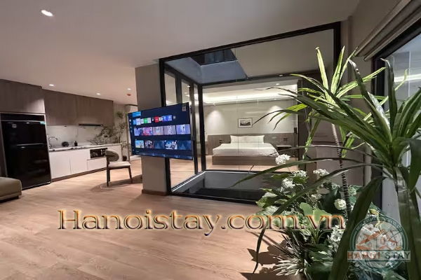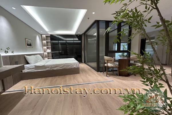• Designer Studio Concept: The centerpiece is the sleek, modern glass box bedroom enclosure. Full-height glass walls separate the sleeping area from the living space, ensuring privacy while maintaining an open, connected, and bright flow, giving it a true luxury resort feel.