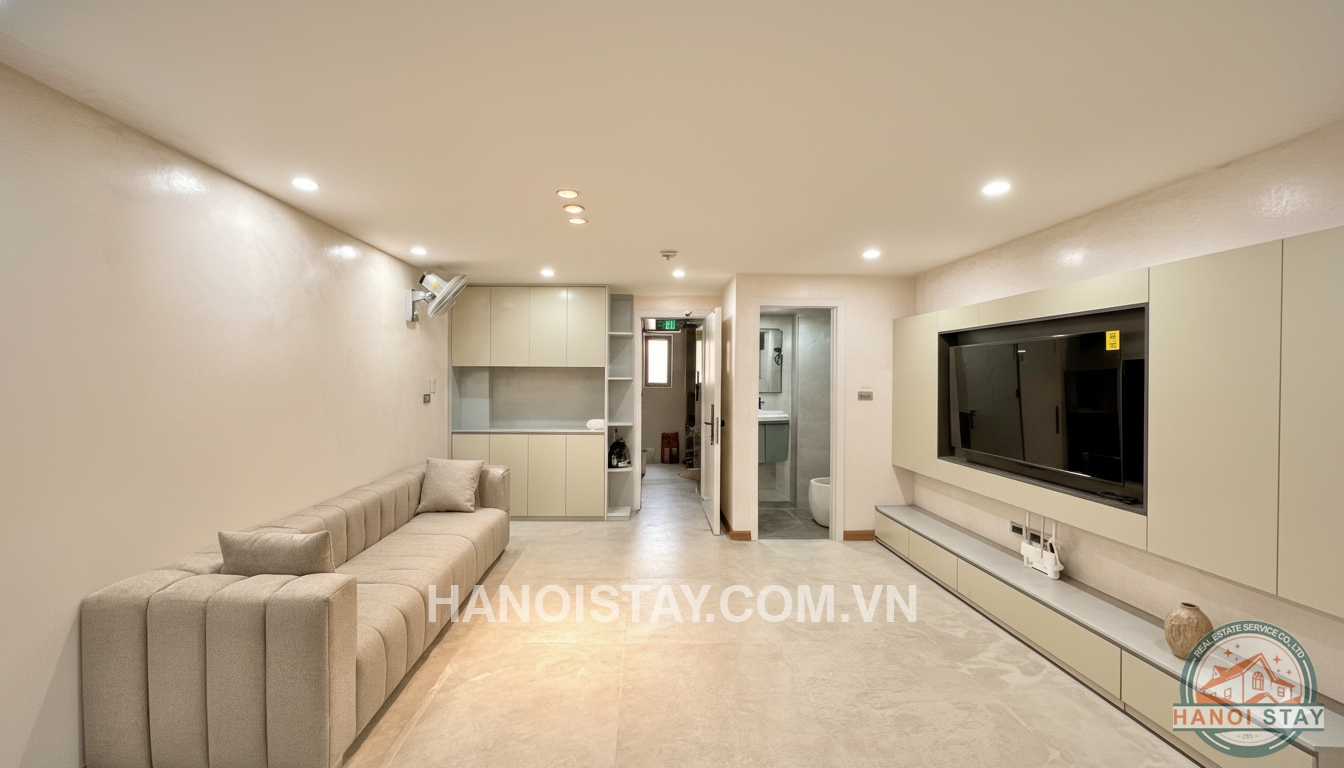 This apartment stands out with its open-plan design, spacious living room, and elegant light-toned interior, creating a relaxing and welcoming atmosphere from the moment you step in. The bedroom features large windows that fill the space with natural light, offering a bright and airy feel—perfect for those who enjoy peaceful living near West Lake.