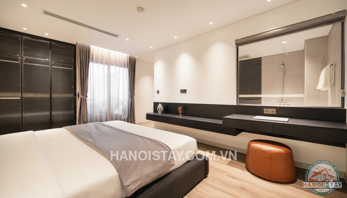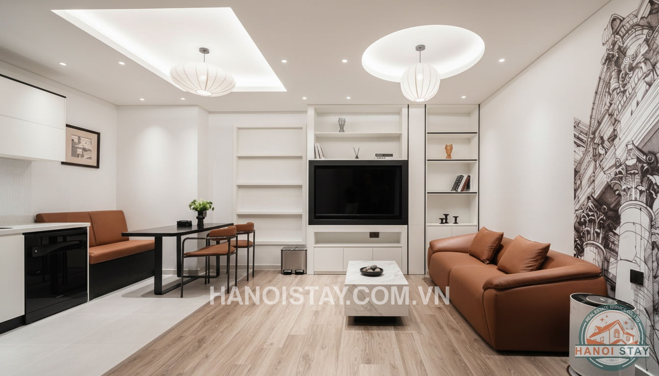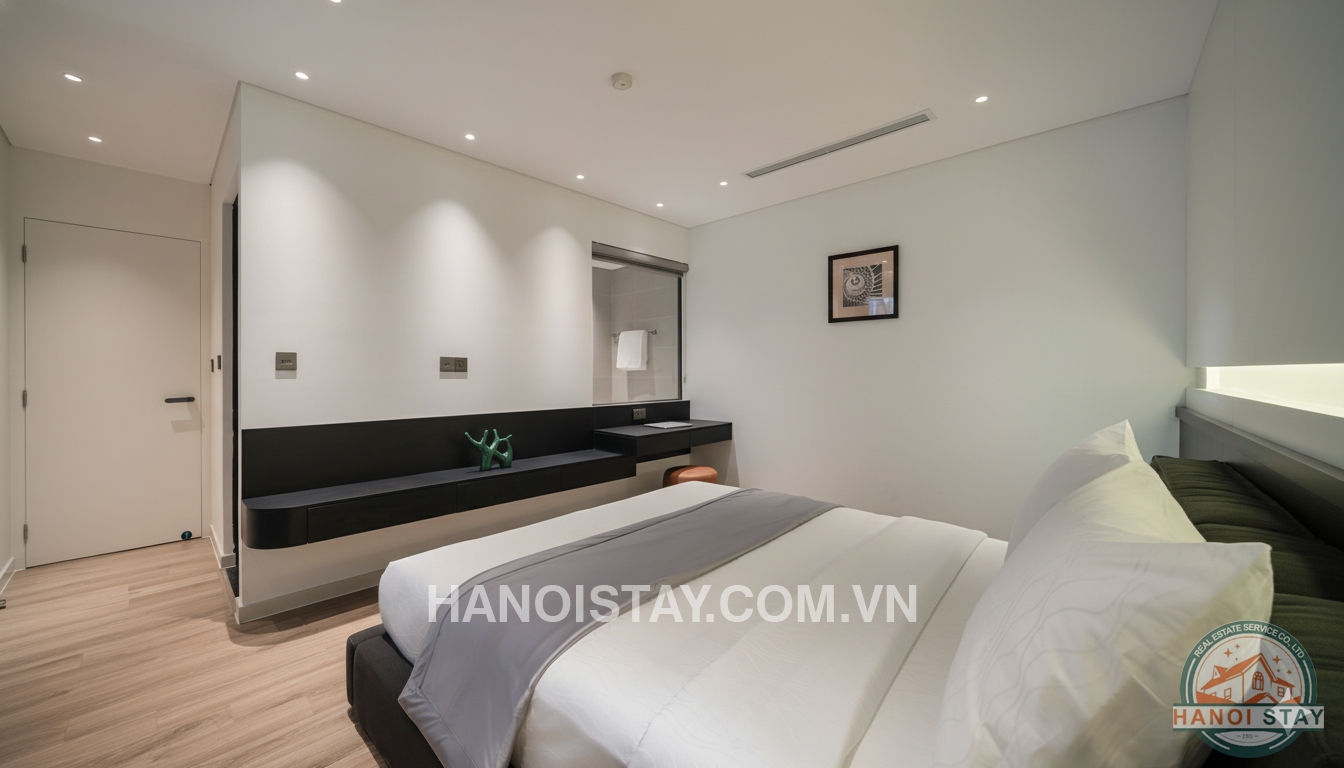 We have a spacious 2-bedroom apartment (82m²) available for rent in a prime location on Han Thuyen - Pham Dinh Ho street. The apartment is exquisitely designed with high-end, contemporary furniture, offering a comfortable and luxurious living space.