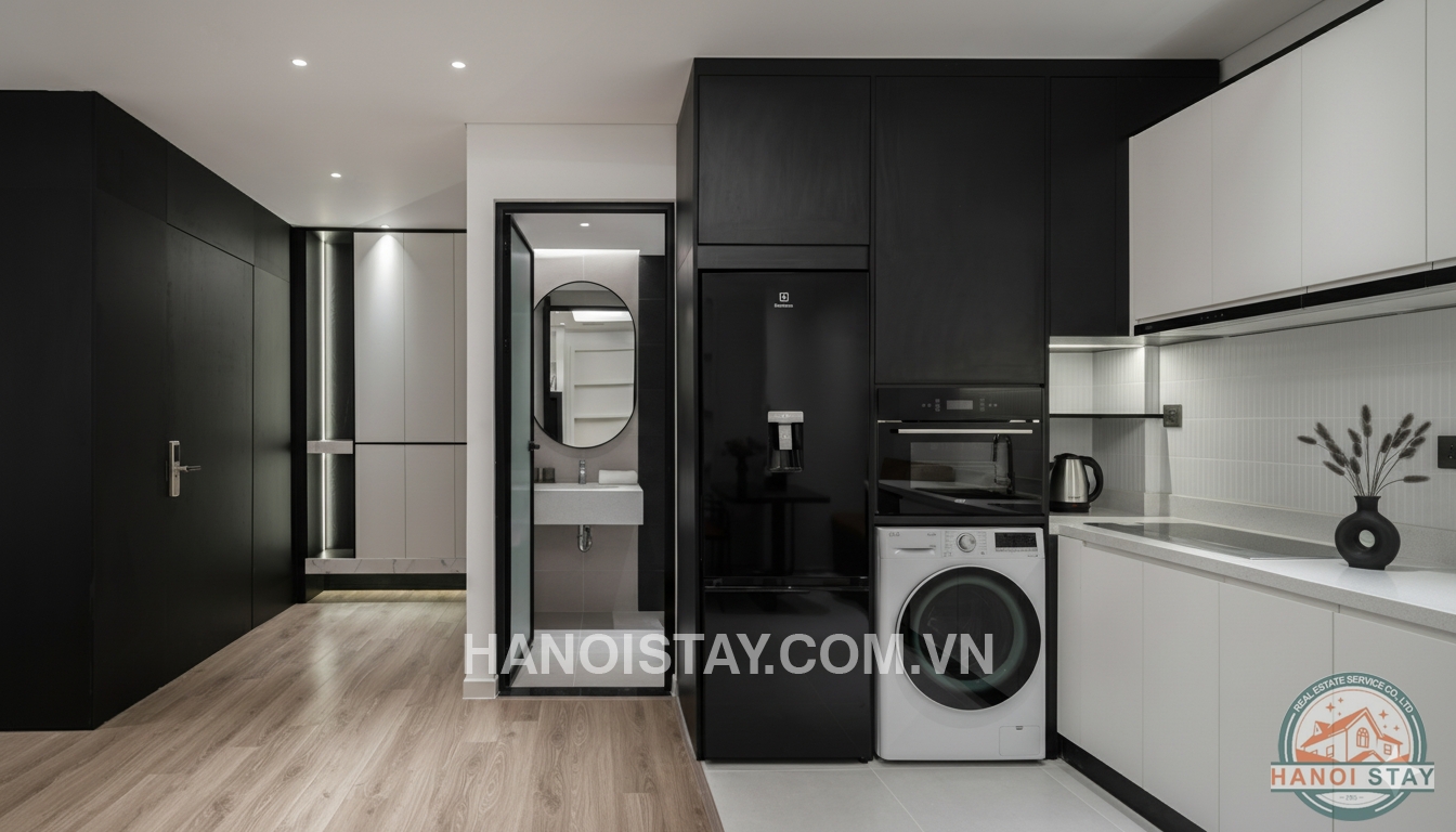 Interior: Fully furnished, modern design with a dominant black-and-white color scheme and premium materials.