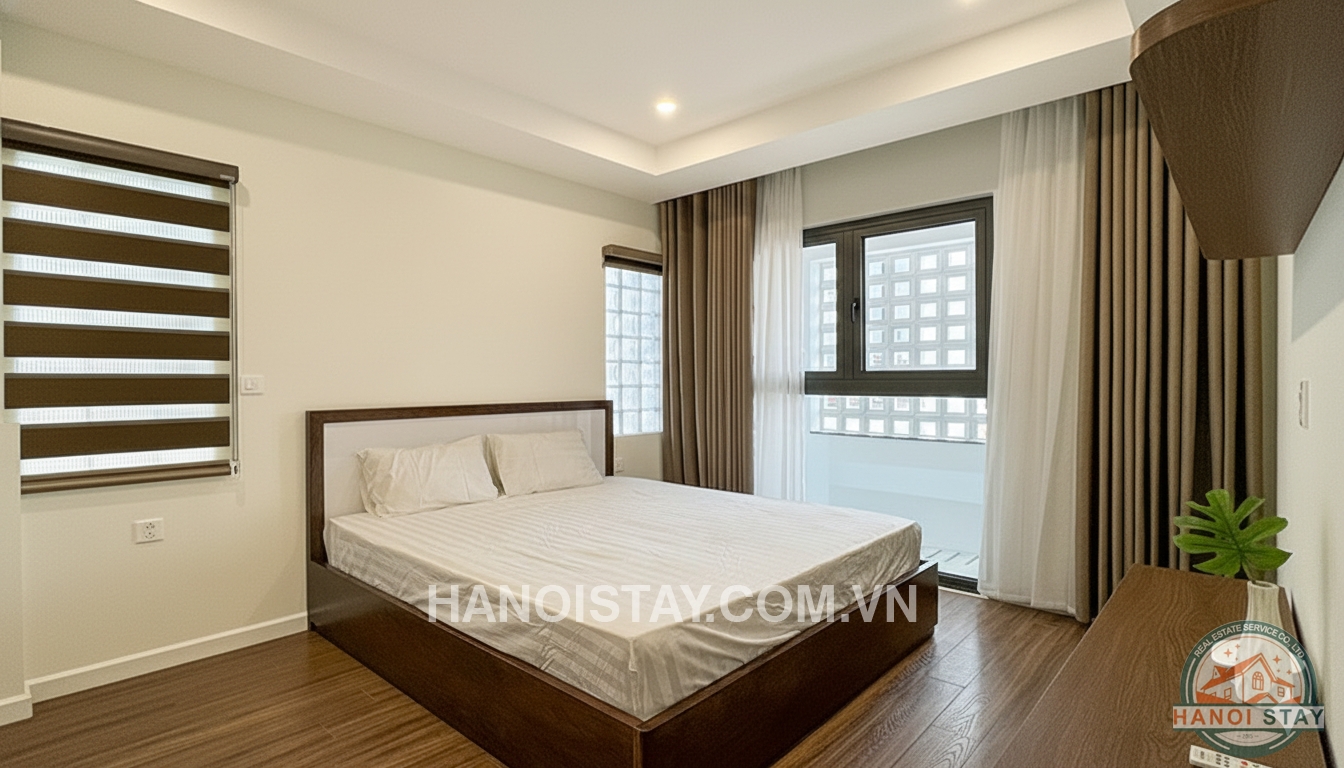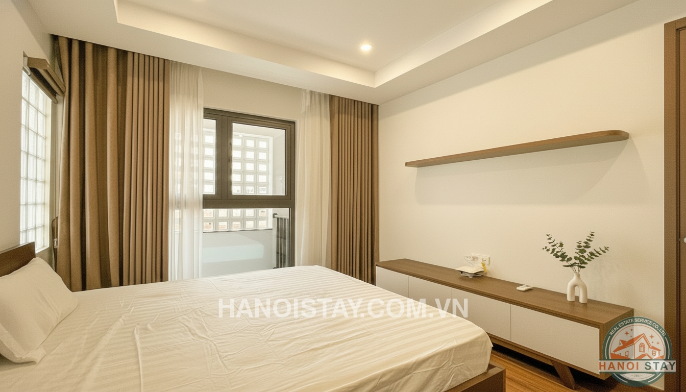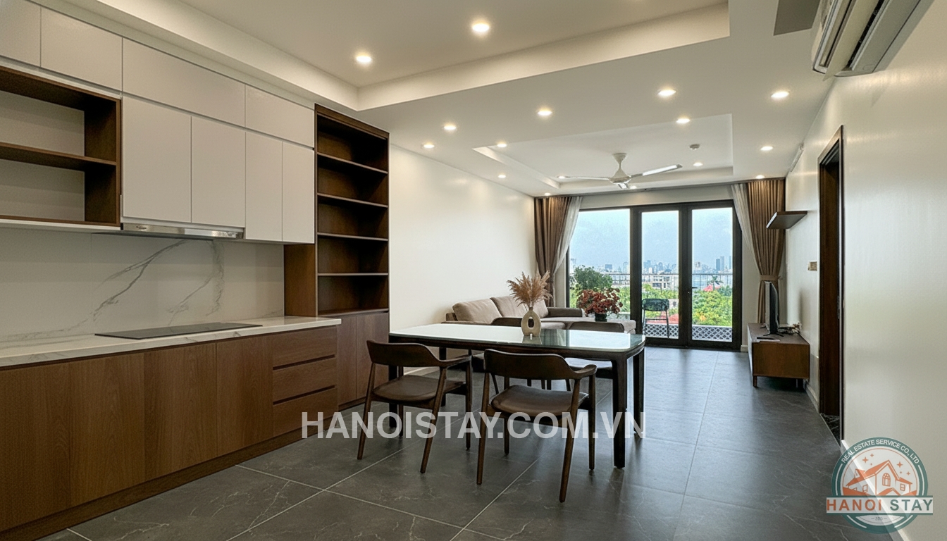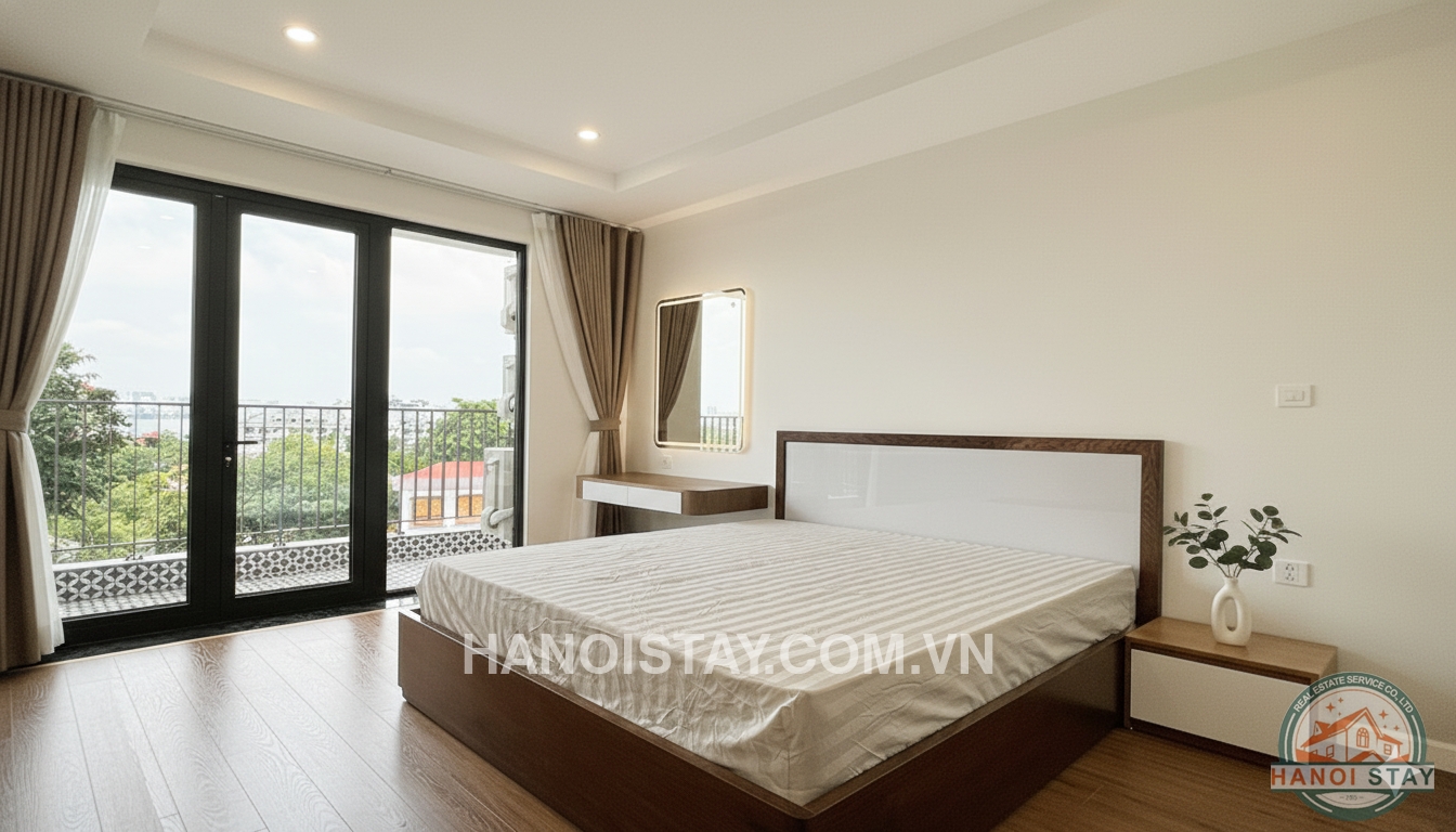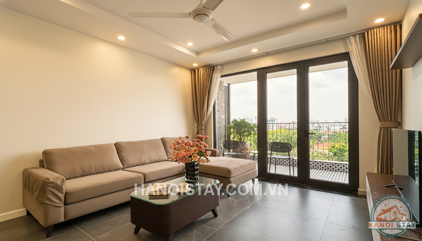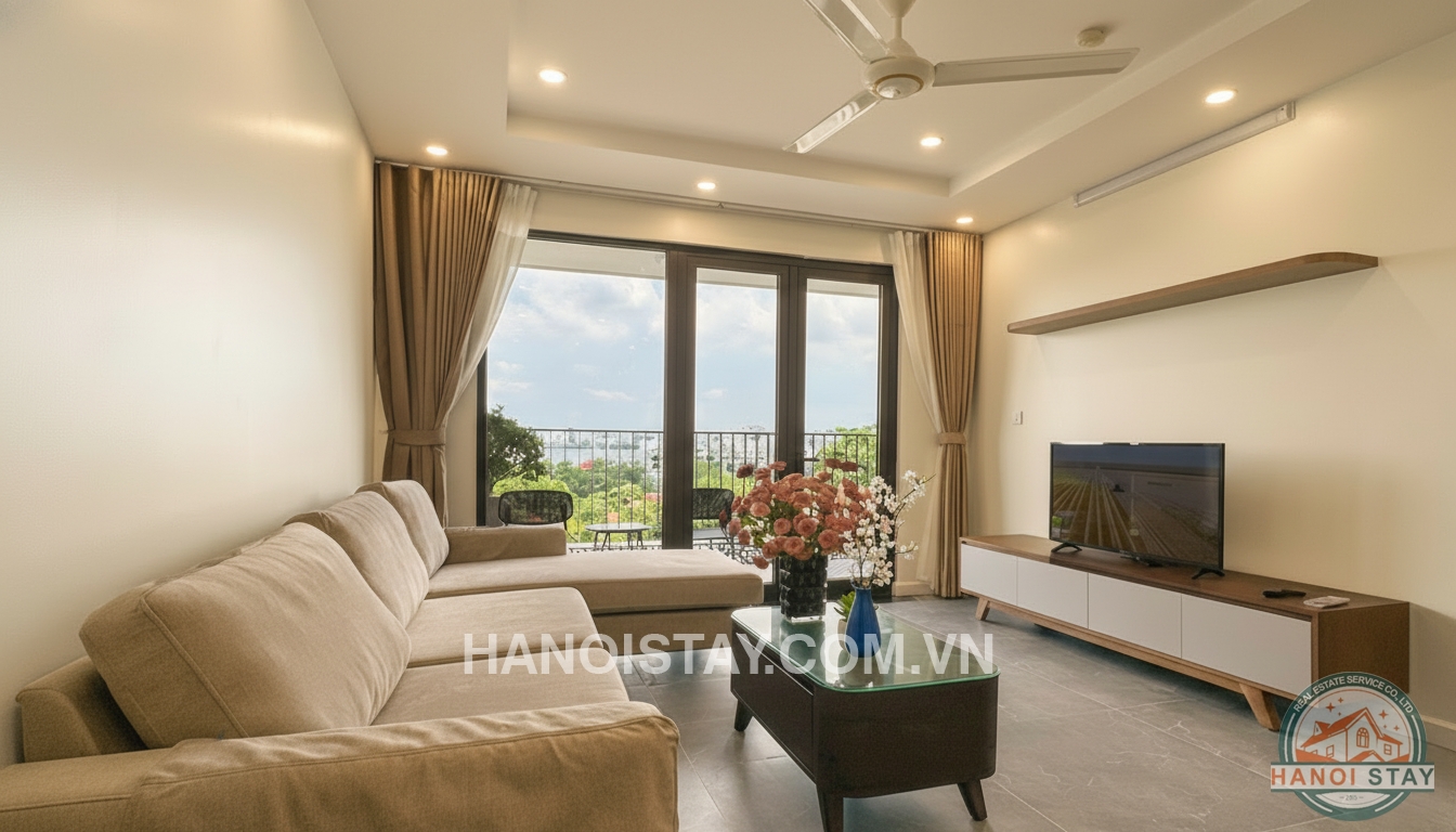 New 3-bedroom serviced apartment for rent in Tay Ho, Hanoi, features a wide balcony perfect for expats seeking nice living near West Lake. This fully furnished unit offers modern amenities in one of Hanoi's most vibrant districts. Ideal for families or professionals, it combines comfort, convenience..