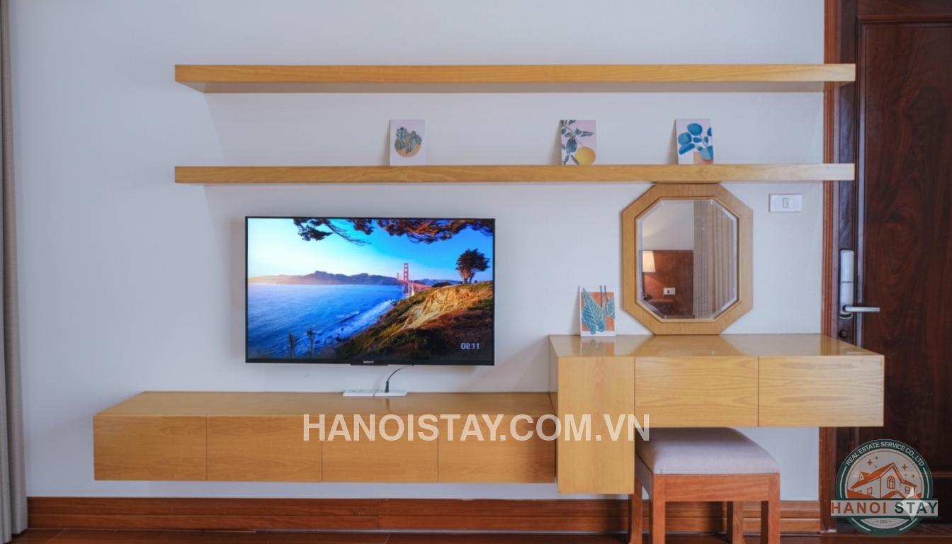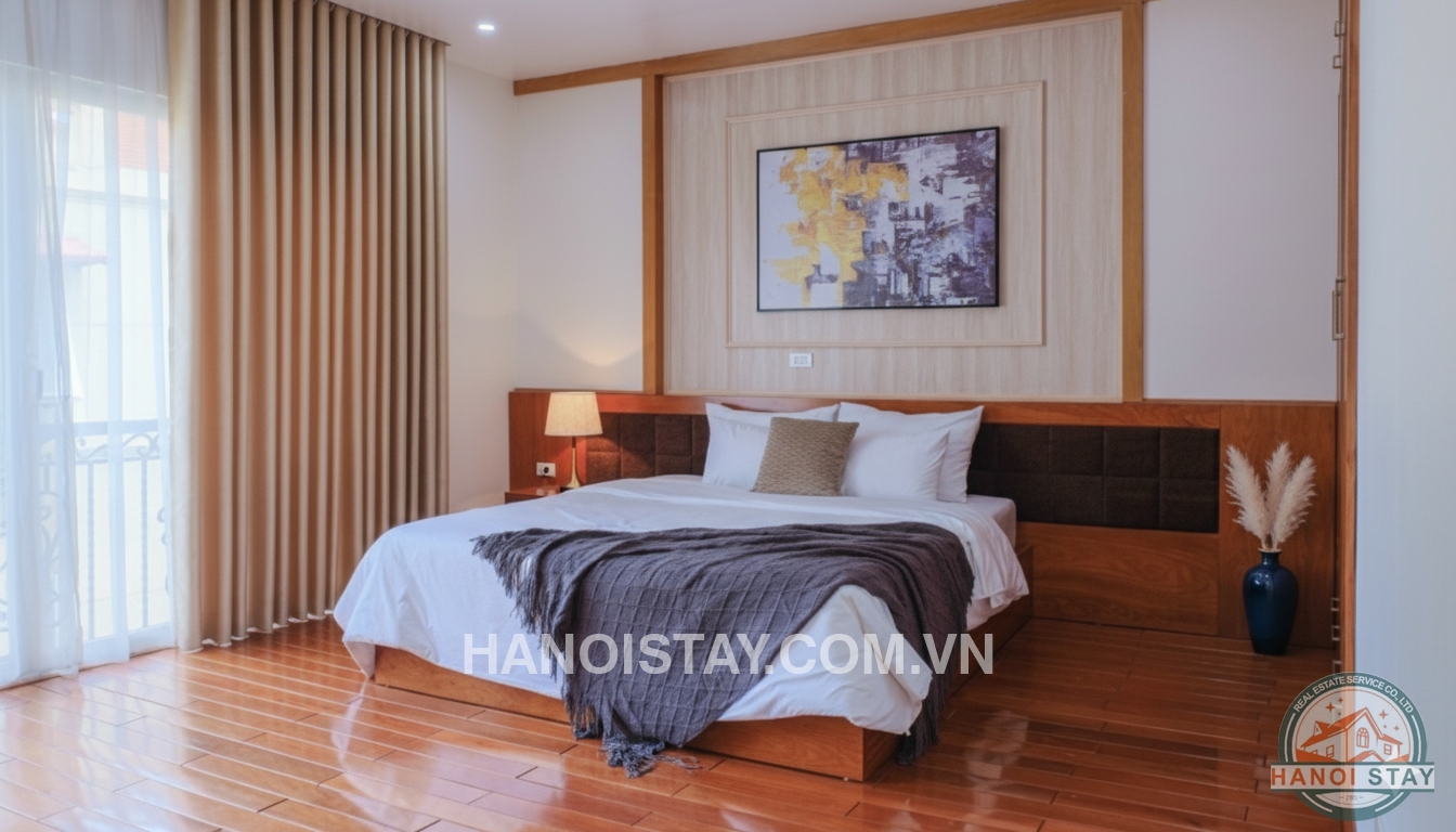 Natural Materials: The entire space is furnished with high-quality natural wood materials, from the flooring and furniture to decorative details, providing a warm, rustic, and relaxing feel.