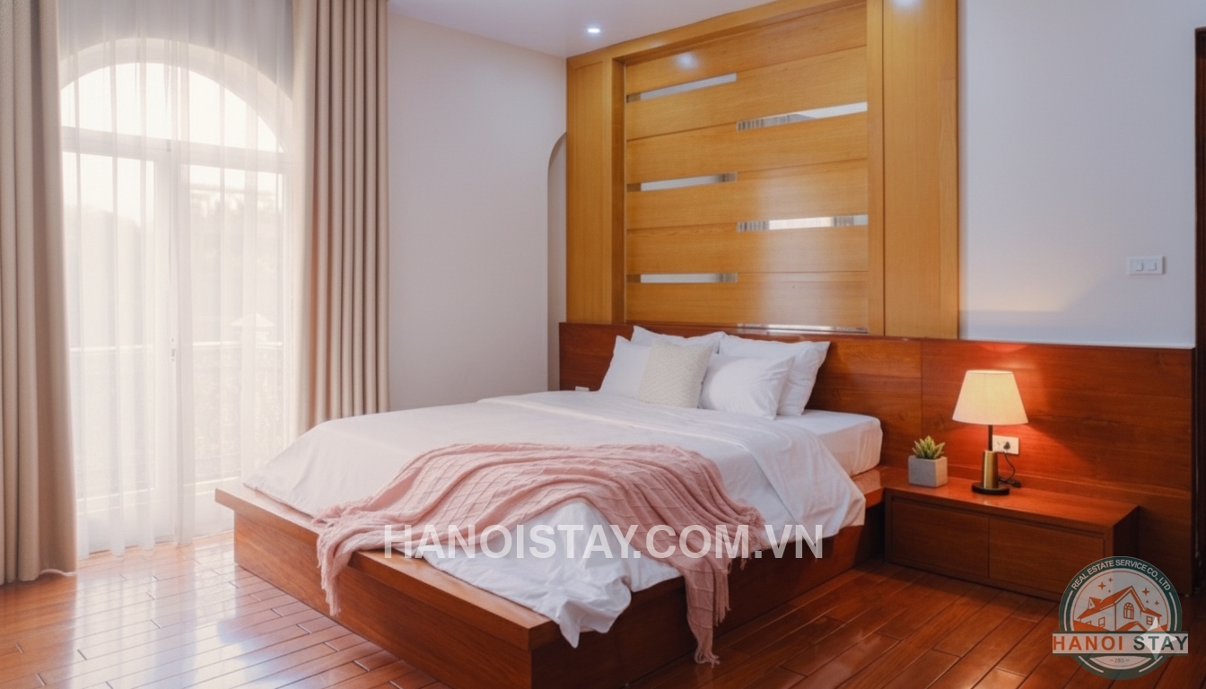 Spanning 140m² (2 Bedrooms, 2 Bathrooms), the apartment embraces a modern Japanese style, focusing on simplicity, harmony, and a connection with nature (Zen Style):