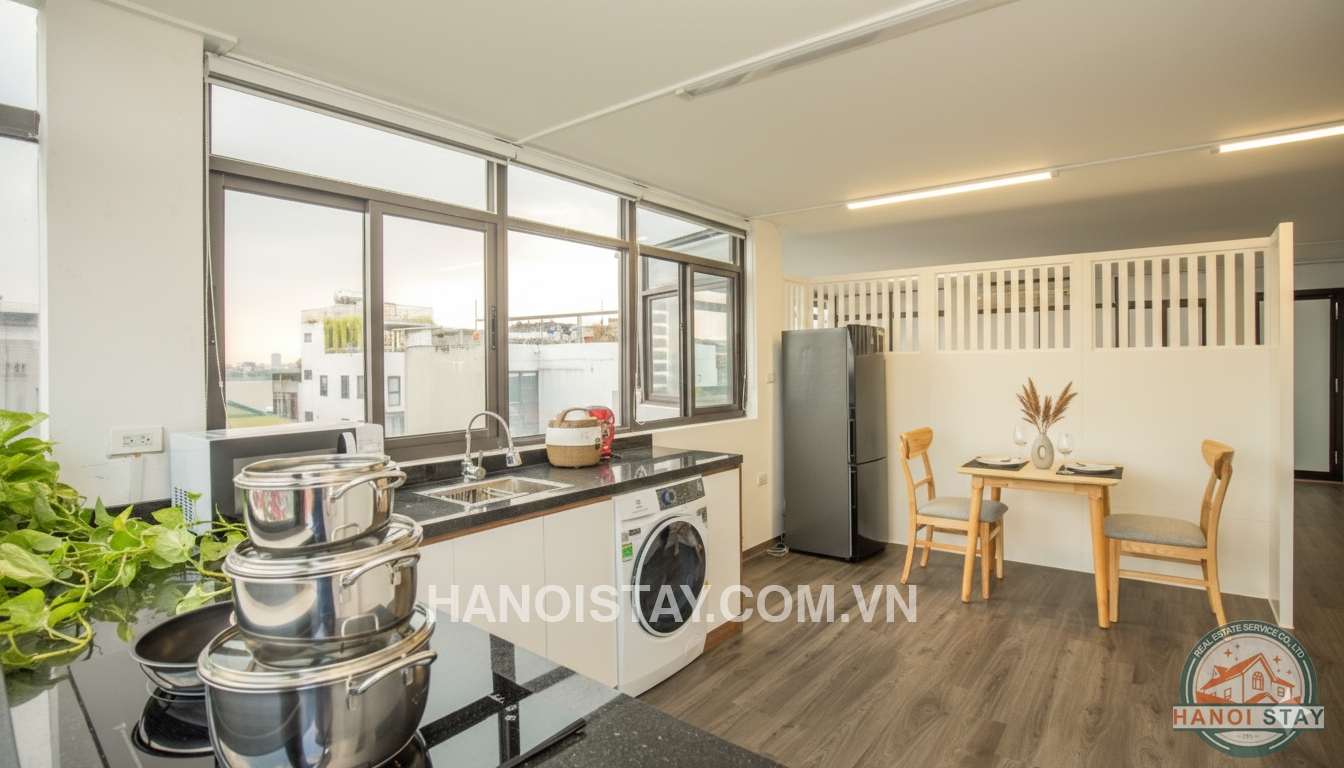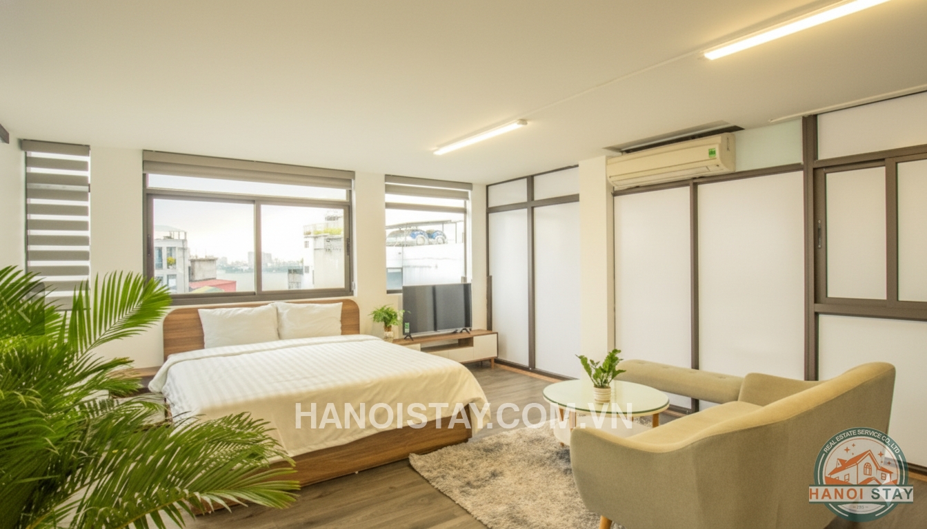 Situated on Vũ Miên Street – a peaceful and secure peninsula in the south-eastern part of Tây Hồ – the apartment offers a quiet living environment with fresh air and a relaxing atmosphere. The location is also highly convenient, surrounded by cultural and heritage landmarks such as Trấn Quốc Pagoda and Quán Thánh Temple, along with a wide range of amenities including shopping centers, restaurants, cafés, and international schools. It is an ideal home for individuals or families looking to enjoy the charm and lifestyle of Hanoi.
