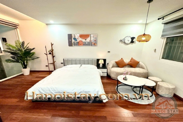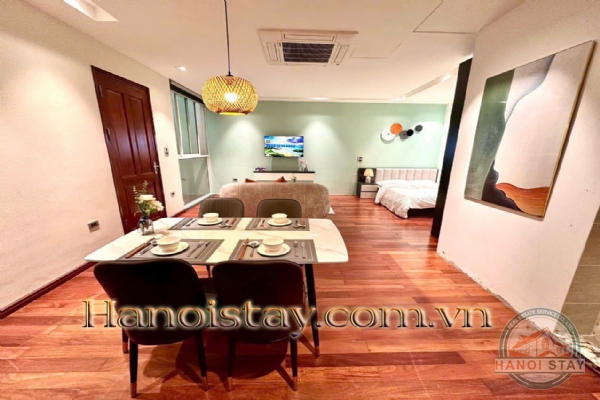 This apartment for rent in Hanoi features air conditioning, high-speed internet, and secure access