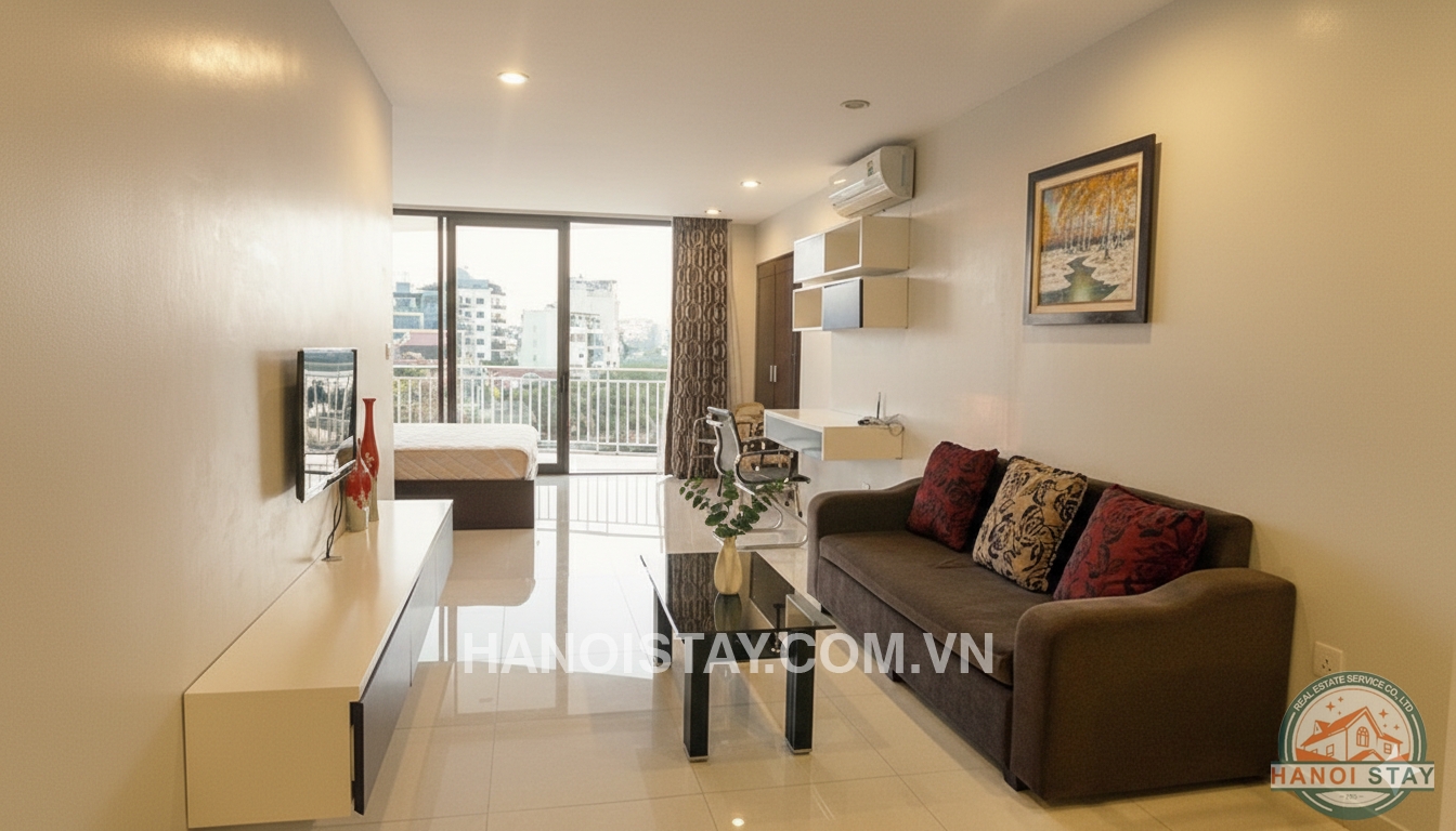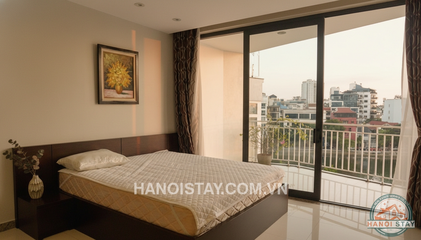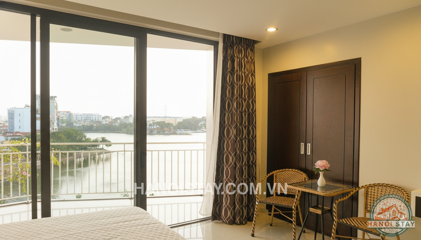High Quality serviced apartment in Truc Bach, Lake view, small balcony
