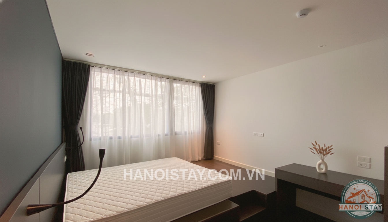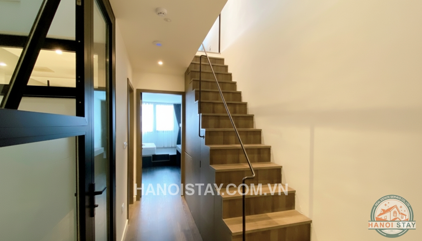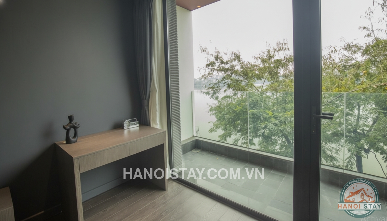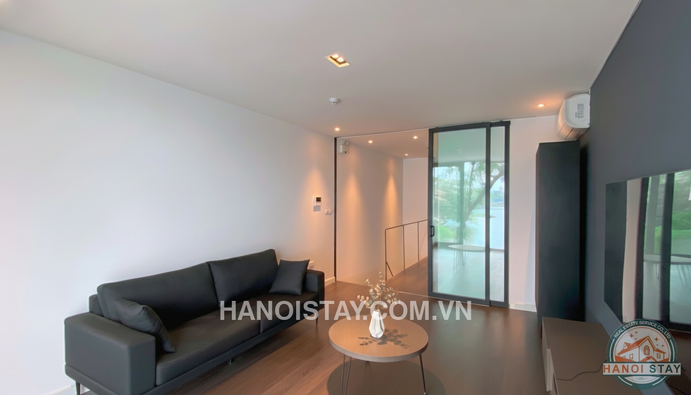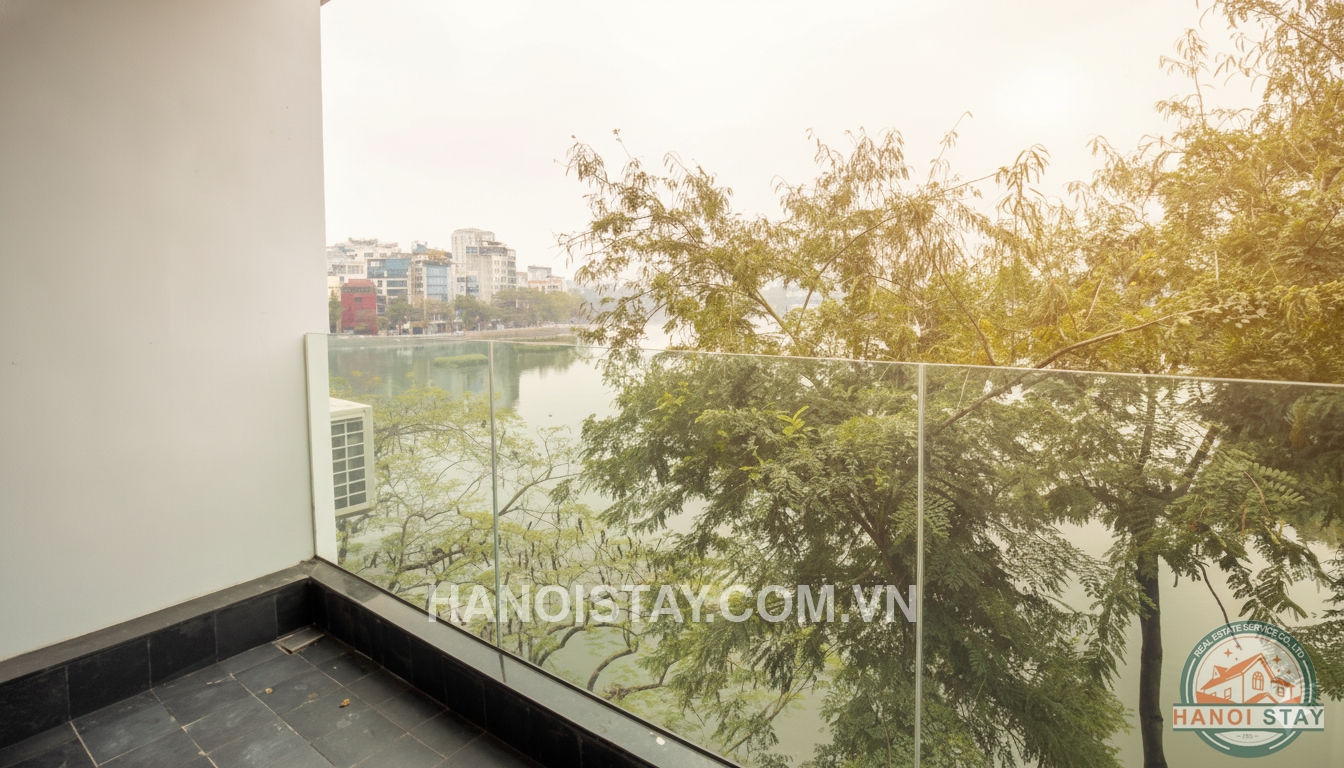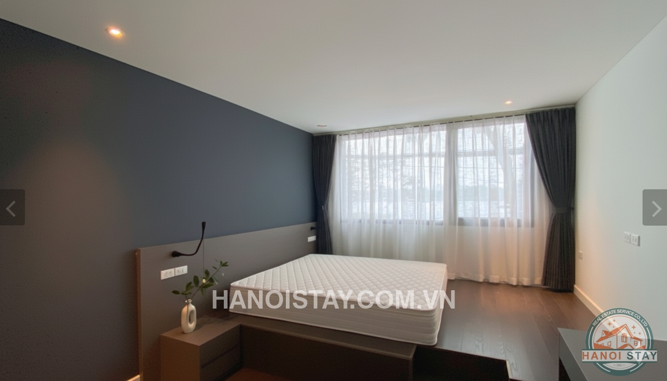If you are seeking an exclusive, high-end living experience with a mesmerizing backdrop, this sophisticated duplex lake view apartment for rent in Hanoi is your ideal choice. Strategically located overlooking the serene Truc Bach Lake, this $130m^2$ residence perfectly blends cutting-edge modern design with premium amenities and an uninterrupted, direct lake view.