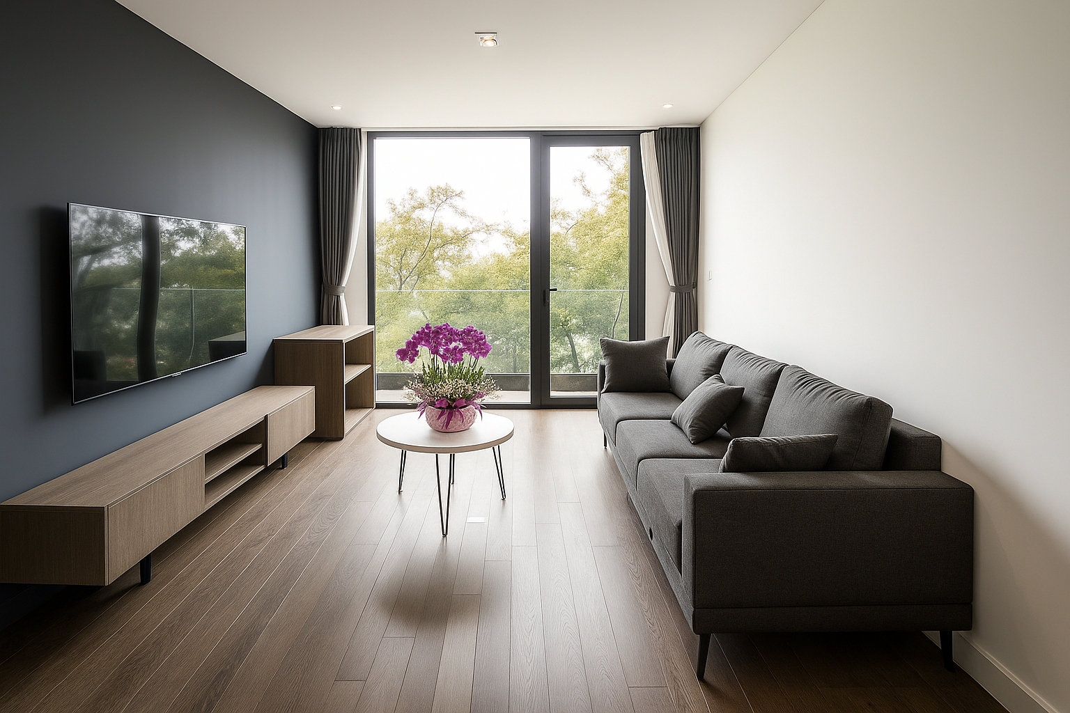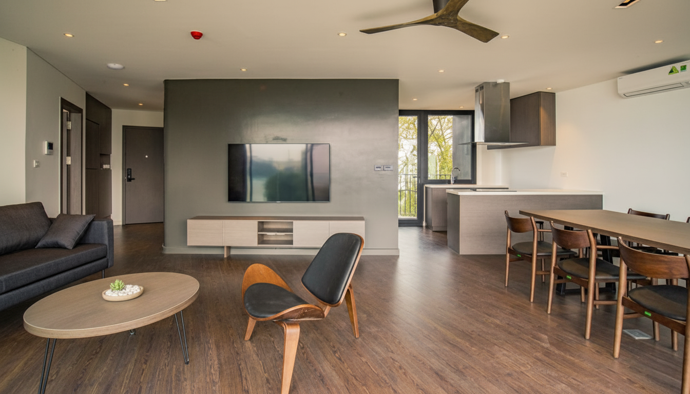 Stylist Three apartment Rental in Truc Bach area, Big Building, Lakeview, Spacious Livingroom